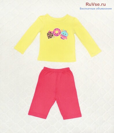 6✅- Летний комплект (футболка с длинными рукавами жёлто-салатового цвета + бриджи малинового цвета), материал х/б.