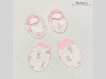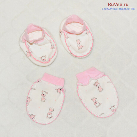 1✅- Комплект белый: пинетки + антицарапки (розовые с жирафиками), х/б.